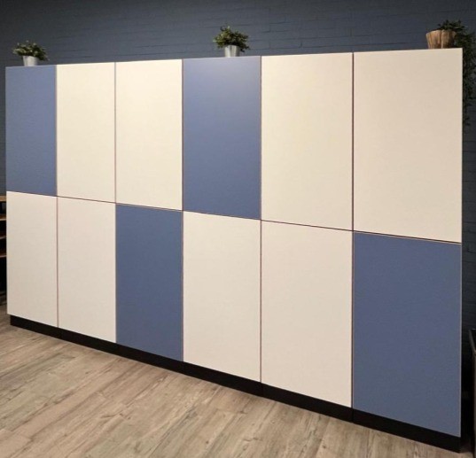 Interieurbouw Hutten heeft een standaard flexibel kastensysteem ontwikkeld. Met een basis maatvoering van 50x50x100cm is elke kasten-unit door 1 persoon te plaatsen. Meerdere kasten-units kunnen op en naast elkaar geplaatst worden waardoor u geheel na eigen inzicht de kastenwand kunt samenstellen.